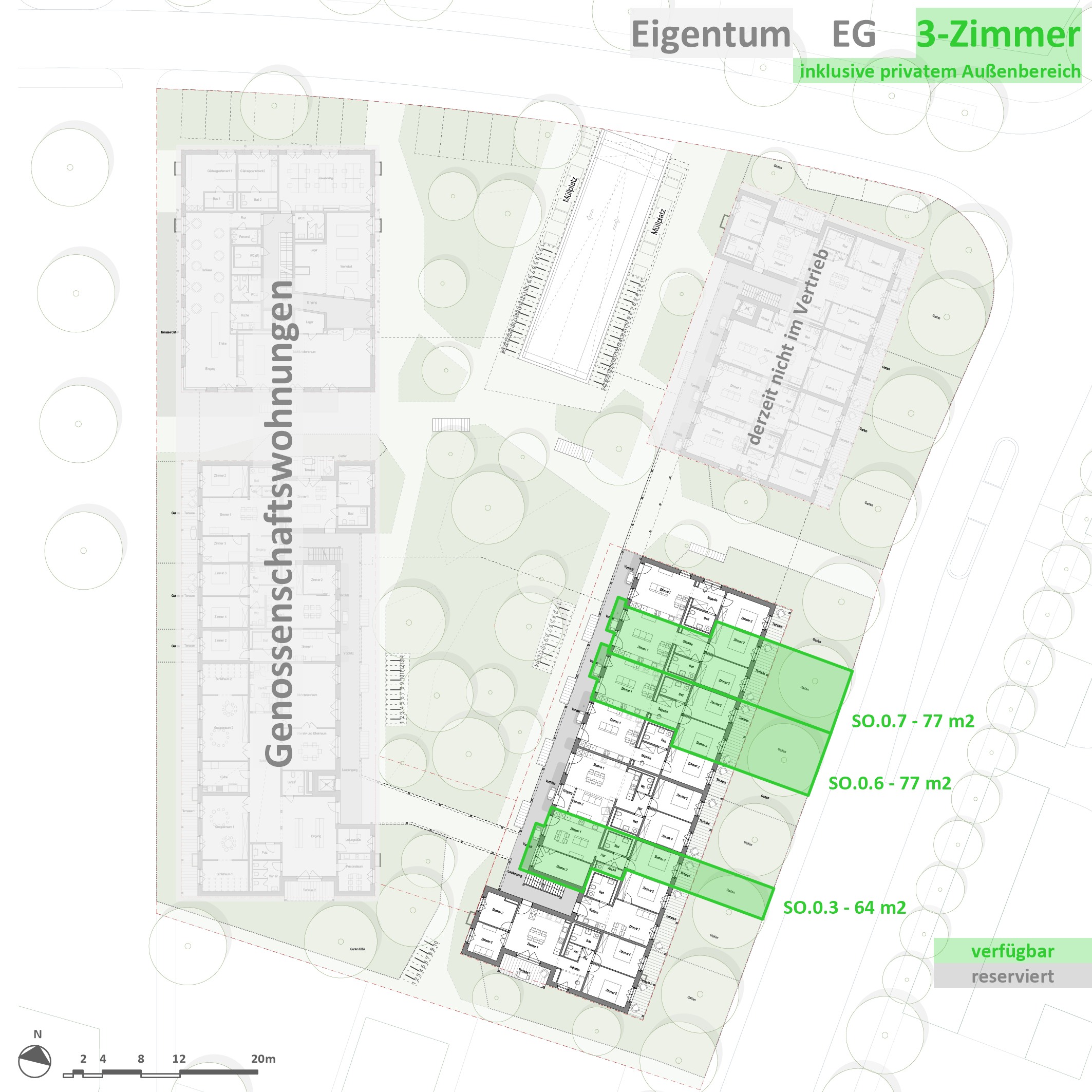 Im gemeinschaftlich und ökologisch ausgerichteten Wohnprojekt der Vielfalt in Ladenburg eG stehen insgesamt zehn 3-Zimmer-Eigentumswohnungen zur Verfügung. Alle Eigentumswohnungen befinden sich im Südost-Gebäude des Vielfalt-Wohnprojekts. Sie vereinen durchdachte Grundrisse mit nachhaltiger Bauweise – ideal für Einzelpersonen, Paare oder Menschen, die zukunftsorientiert wohnen und leben möchten. Im Vielfalt-Wohnprojekt ist ein zentraler Bestandteil die gemeinschaftliche Nutzung von multifunktionalen Räumen, die im Miet- oder Kaufpreis enthalten sind. Mehr dazu erfahren Sie hier.